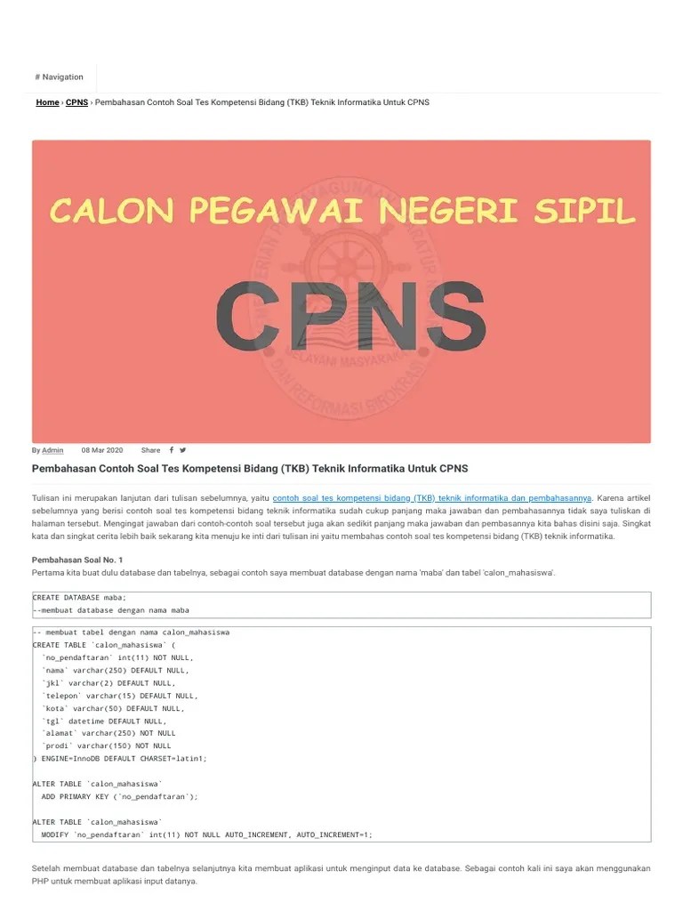 Contoh soal tes teknik informatika dan jawabannya jawabanku id contoh soal tes teknik. Pendaftaran cpns 2021 akan dilakukan lewat portal . Pengolah data keamanan siber dan sandi: . Formasi teknik komputer · 3. Documents similar to soal tes cpns teknik .